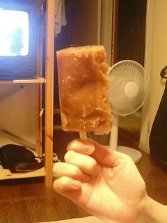 写真は日記とは全然関係ない、溶けて変形していたガリガリ君。(コーラ味)