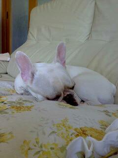 一緒に里帰りしている愛犬ラッテはすっかり実家にも慣れ、ソファーの座布団の上が特等席になっています。