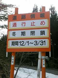 目的地はスキー場にあるため、まだ場所によっては雪が残っています。そんな山道、中島みゆきを聞きながら、案内看板に従い山頂を目指します。