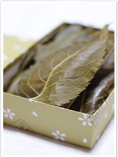 大きな3枚の塩漬け桜の葉で包み込まれていまして
