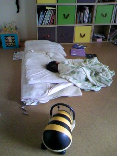 うちには娘がおりまして、もうすぐ1歳半。やんちゃ盛りですよー!外で走り回って、遊び疲れて寝たところです。