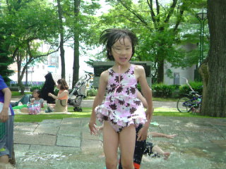 暑さから逃れるために、大通公園の遊水路に来ました。