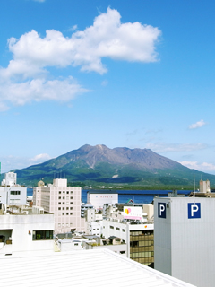 写真は鹿児島市内から爆発してない桜島の眺め。