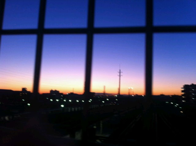 部屋の窓から見えた空はオレンジ色と濃紺のグラデーション。