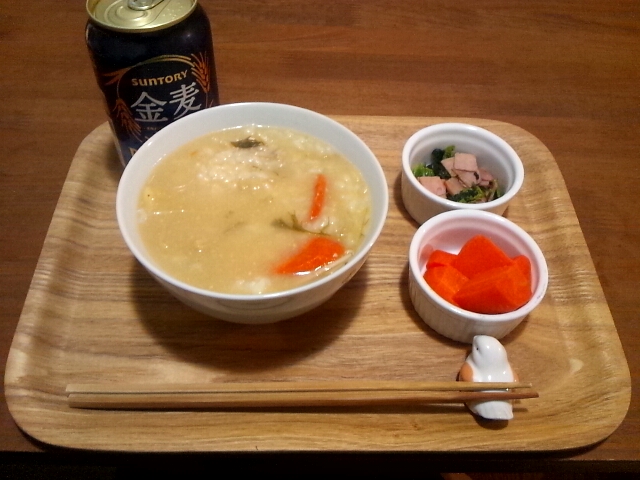 Fri.10.07.2011Fri.01.24.2020 Relay Diary 夕ごはん。 とり野菜みそのおじや、ほうれん草のバター醤油炒め、人参の蒸したの。 在庫整理。 #144 ひらやま 綴る日々http://coffee-milk.petit.cc/