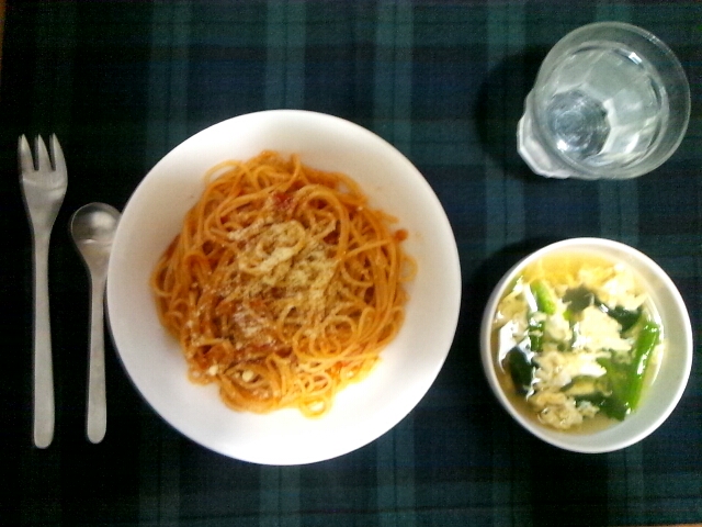Sun.10.09.2011Fri.01.24.2020 Relay Diary 夕ごはん。 トマトソースのパスタ、ほうれん草と玉子のスープ #144 ひらやま 綴る日々http://coffee-milk.petit.cc/