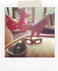 「こらーっ!ごはん中に、食べ物で遊ばないの!」