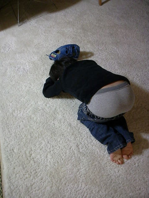 写真は怒られていじけた息子。(おパンツはご愛嬌)